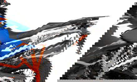 A solo saddle is finished with a fringed and decorated leather valance, white seam piping and red contrast stitching, and a chrome rail for a nostalgic look. A matching black leather tank strap is embellished with studs and a concho. Leather and vinyl saddlebags are detailed with chrome conchos with acrylic red centres, chrome studs and leather fringe, white seam piping and red contrast stitching. The saddlebags are water-resistant, have keyed locks for security, and a rigid liner so they will hold their shape season after season.