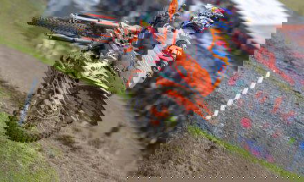 The MX2 class was won, for the second weekend in a row, by Red Bull KTM Factory Racing’s Sacha Coenen, after two wildly different races saw crashes for several riders and resulted in a reduced points lead for Nestaan Husqvarna Factory Racing’s red plate holder Kay de Wolf.